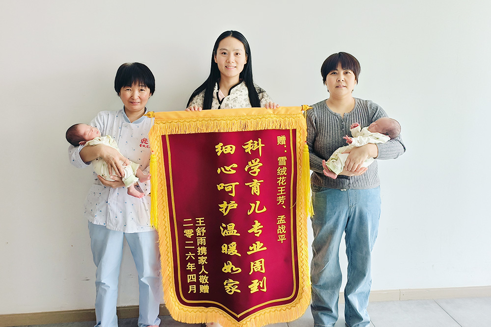 雪绒花月子会所万安店客户送来两面锦旗
